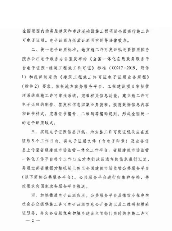 住建部辦公廳:全面推行建筑工程施工許可證電子證照!