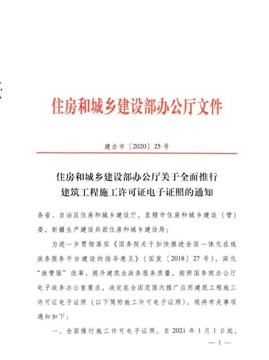 現(xiàn)將《住房和城鄉(xiāng)建設(shè)部辦公廳關(guān)于全面推行建筑工程施工許可證電子證照的通知》(建辦市〔2020〕25號)轉(zhuǎn)發(fā)給你們,并提出如下要求,請一并貫徹執(zhí)行。